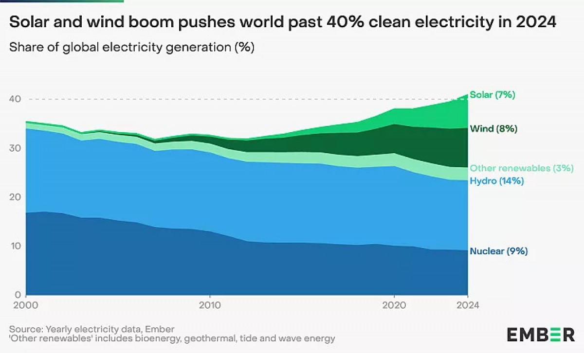 Η Think Tank Ember δημοσίευσε την έκθεσή της για την καθαρή παγκόσμια ενέργεια για το 2024, και ήδη έχουμε ξεπεράσει το 40% από πηγές χαμηλών εκπομπών άνθρακα.